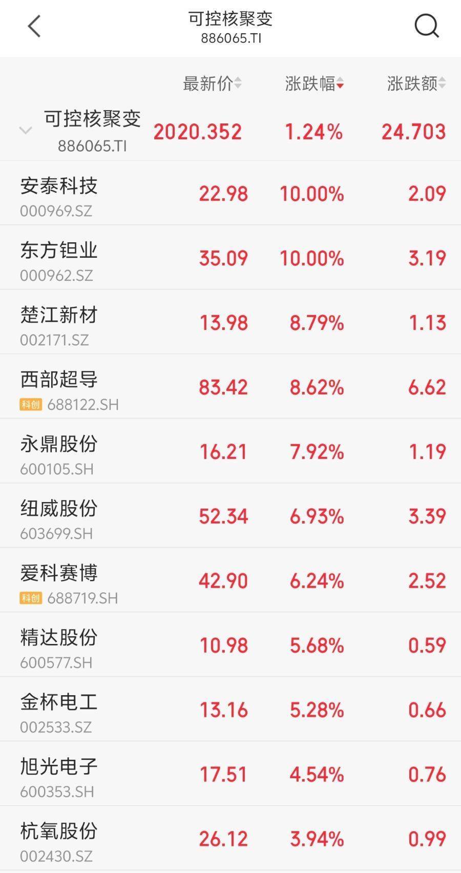 10月28日早盘,可控核聚变概念延续强势公富网配资,安泰科技(000969.SZ)、东方钽业(000962.SZ)两连板,西部超导(688162.SH)、永鼎股份(600105.SH)等跟涨。